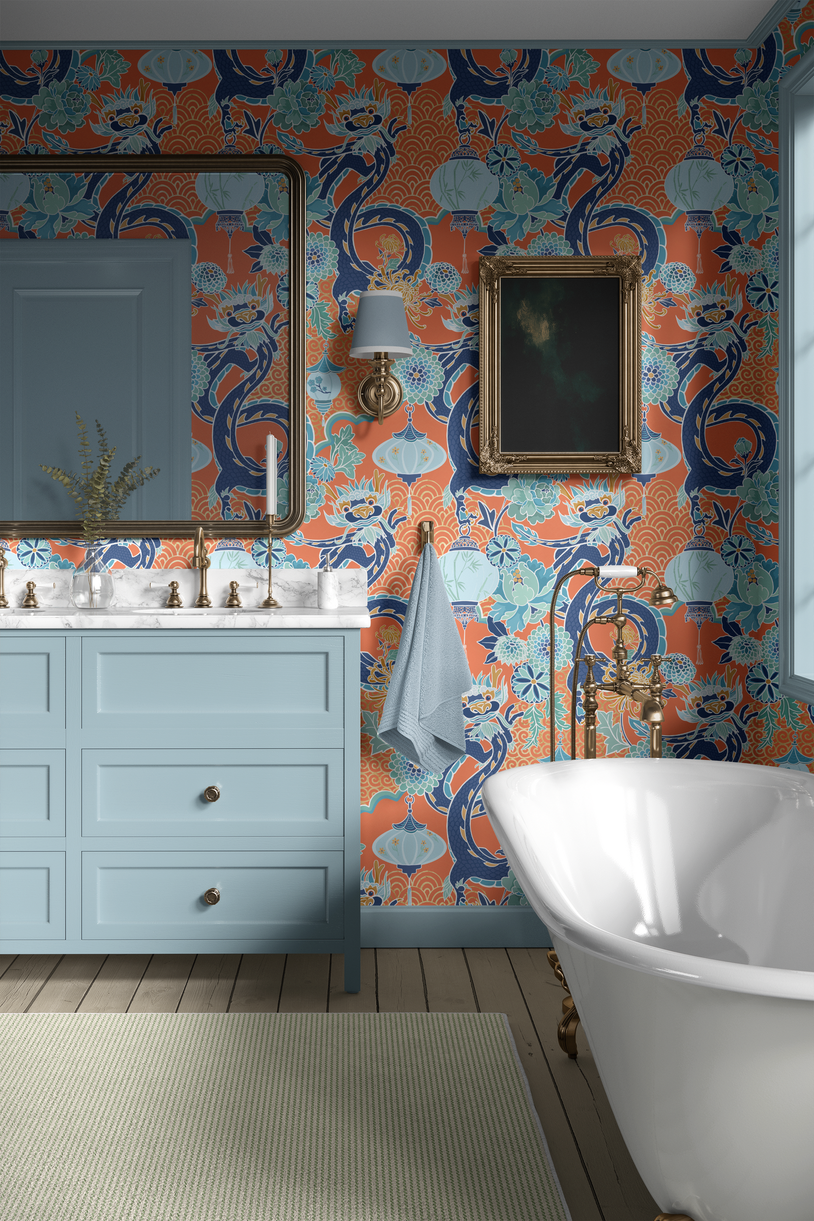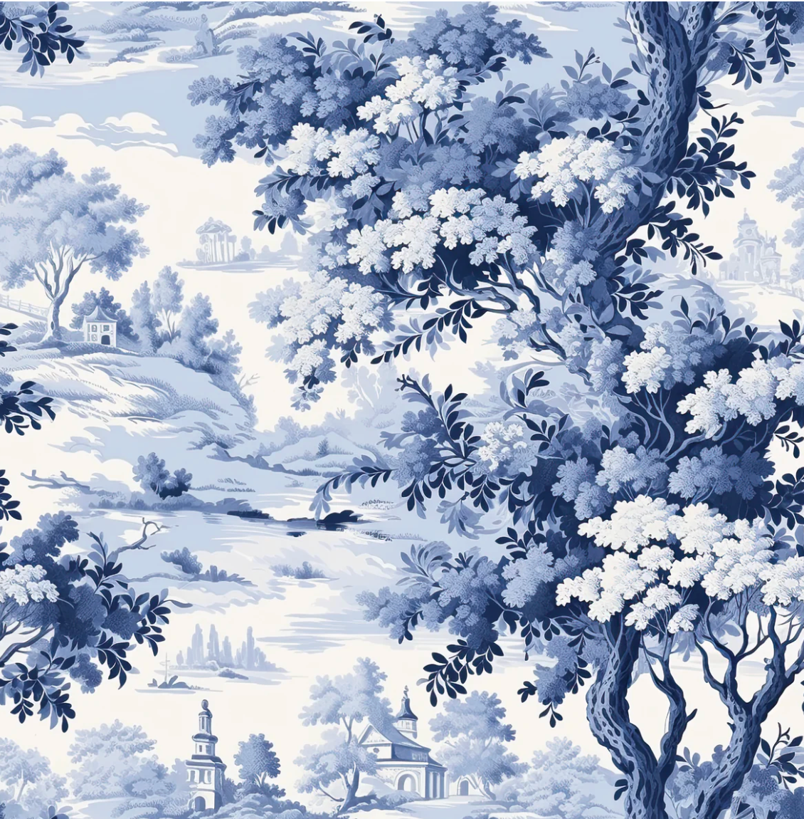 Make a statement with FLORENCE, a blue and white toile wallpaper featuring intricate floral and vine designs with a dainty feel. Its delicate brushstrokes add depth and texture to any room, offering a fresh yet timeless look.