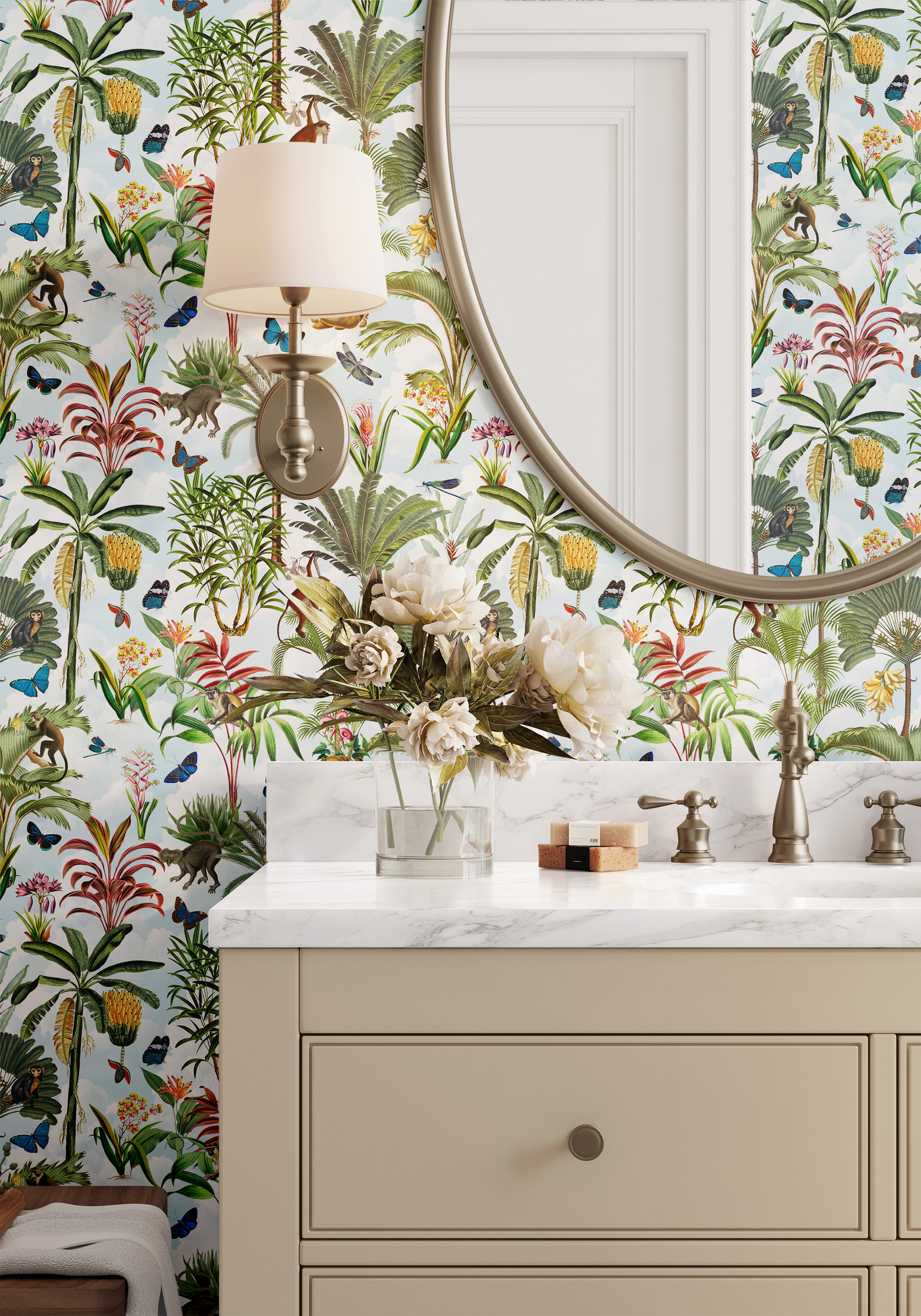 Eternal Eleganceby Uta Naumann is a richly romantic collection that channels the opulence of a bygone era. This collection celebrates the beauty of classical luxury and lush gardenscapes. With detailed florals, regal figures and even playful monkeys dressed in period attire, every print feels like a page from a storybook.