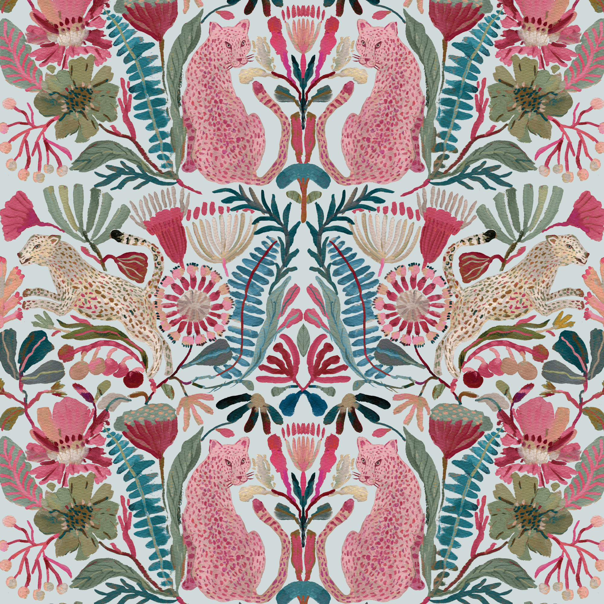 The Whimsical Flora and Faunacollection by Subhashini Narayanan is a celebration of nature’s charm. This hand-painted collection features bunnies, birds, leopards, snakes, tropical fruits, surreal botanicals and more. All rendered in watercolor, gouache and ink with an eye for rich color and intricate design.